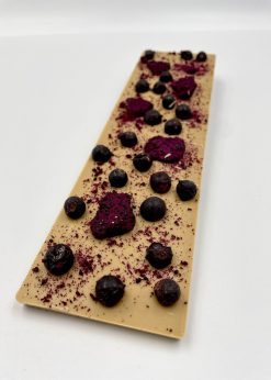 Karamelová čokoláda 30,4,100g – dračie ovocie + lyofilizovaný čierny rybíz + dračí posyp